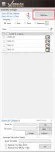 From the Assembly Manager, click on Settings to open the Victaulic Tools toolbar configuration panel.
