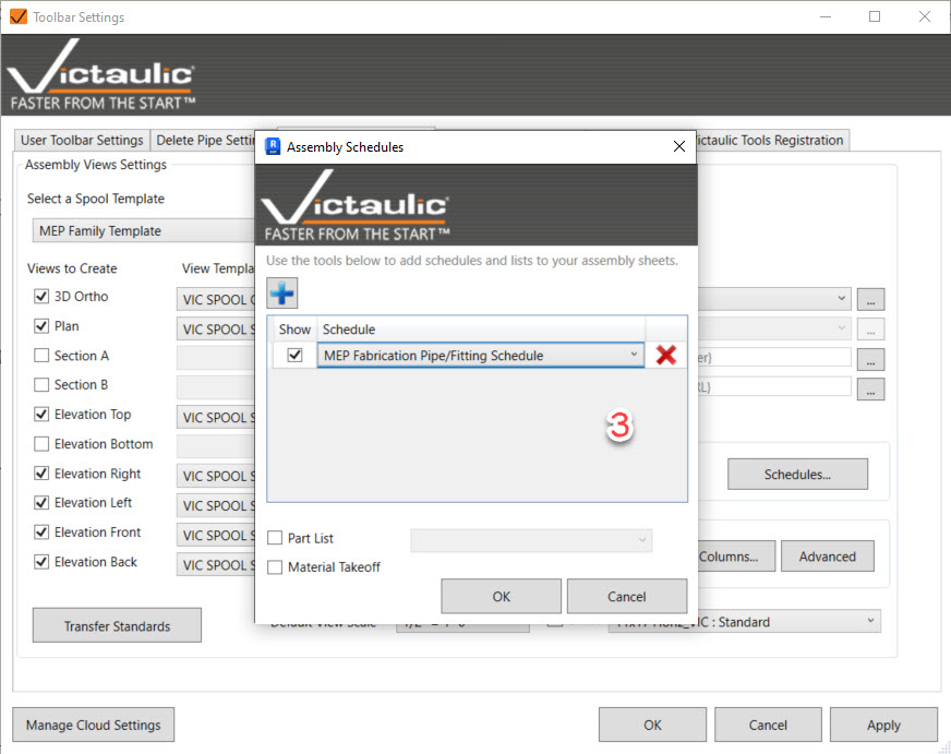 From the Assembly Manager, click on Settings to open the Victaulic Tools toolbar configuration panel.
