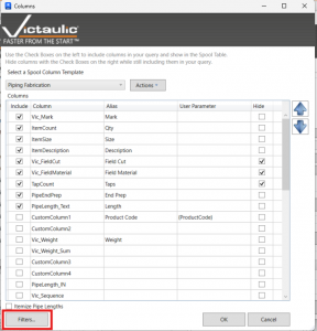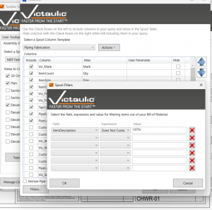 Victaulic Tools allows filtering of components from the BOM through the Spool Filter settings.