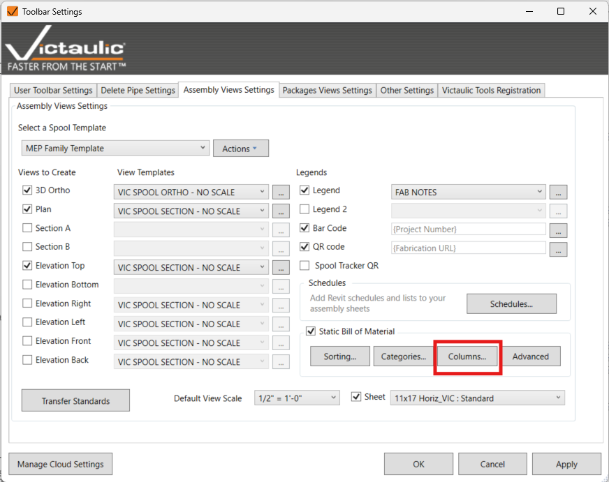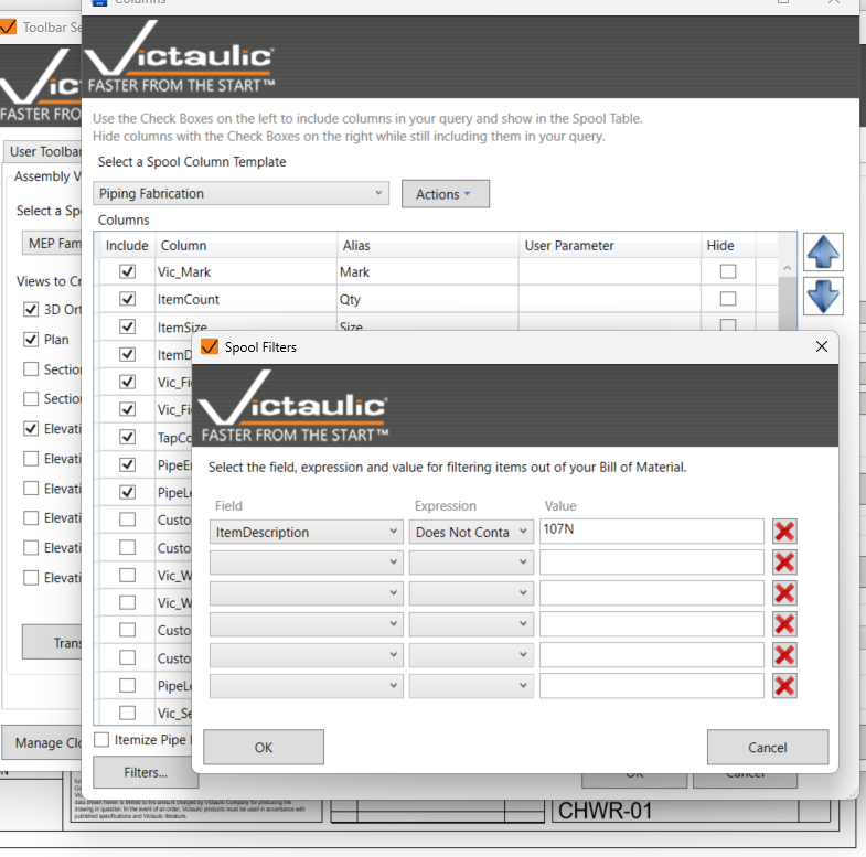 Victaulic Tools allows filtering of components from the BOM through the Spool Filter settings.