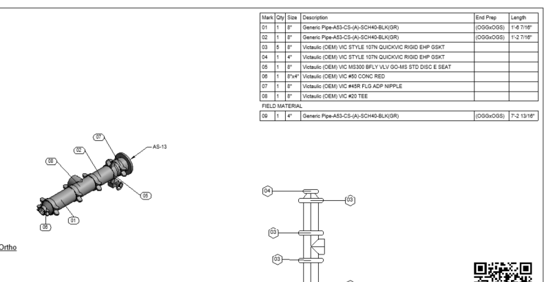 This produces a cleaner, fabrication-ready BOM containing only relevant materials such as pipes, fittings, valves, and accessories.